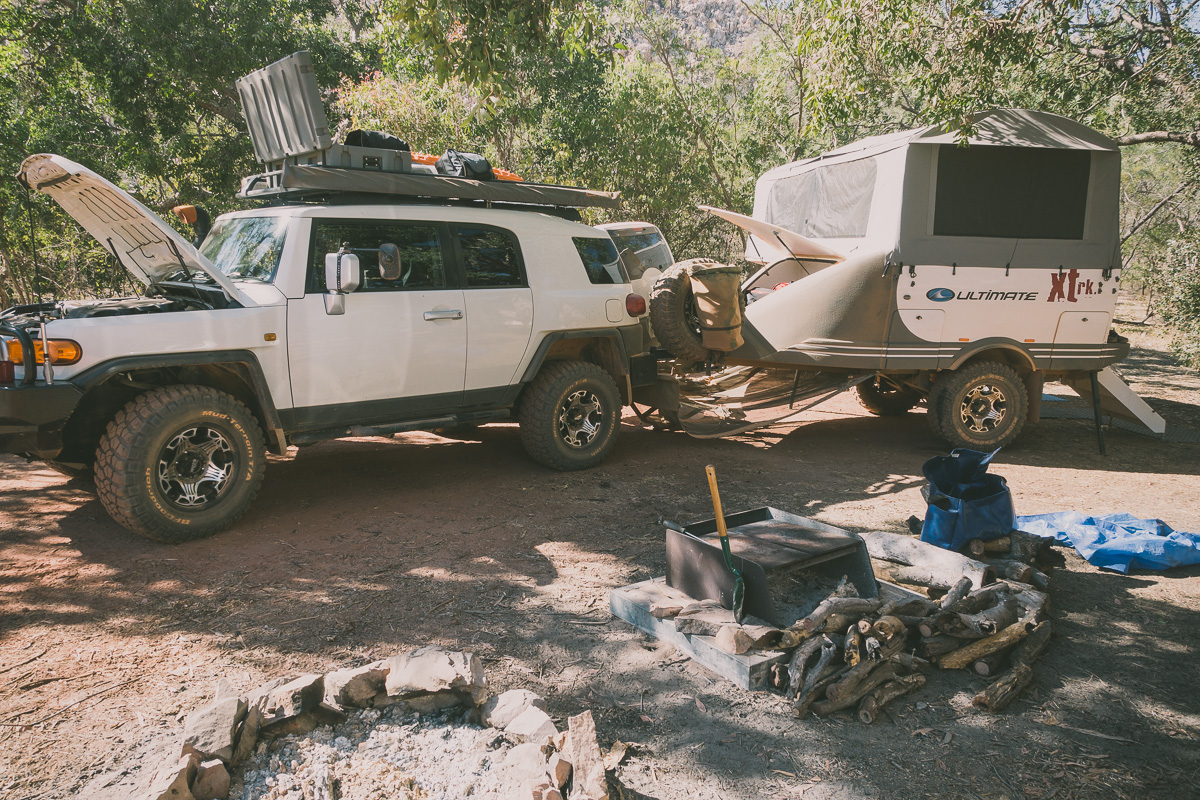 Dag vijf. Limmen National Park. Stella besloot dat ze genoeg had van mijn muziekkeuze en blies een band. De kofferbak zat muurvast door het stof. Geen telefoonsignaal. Geen mens te bekennen. Zes, zeven uur lang zat ik daar, in het niemandsland tussen Cairns en Darwin, terwijl de zon onbarmhartig deed wat de zon doet in de Outback.