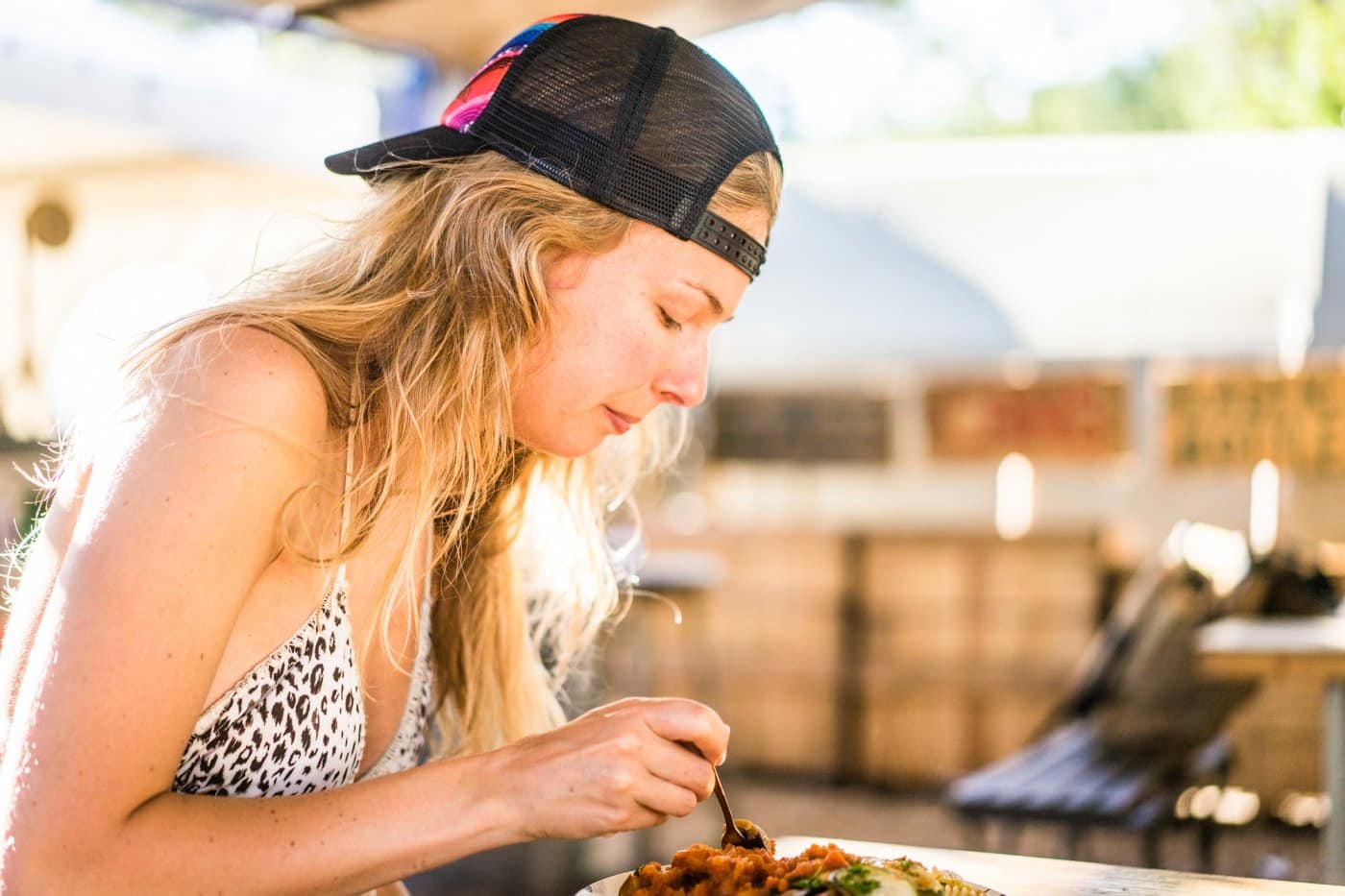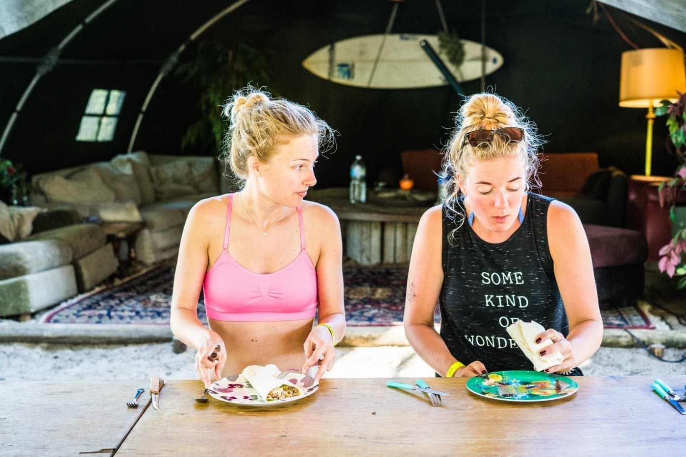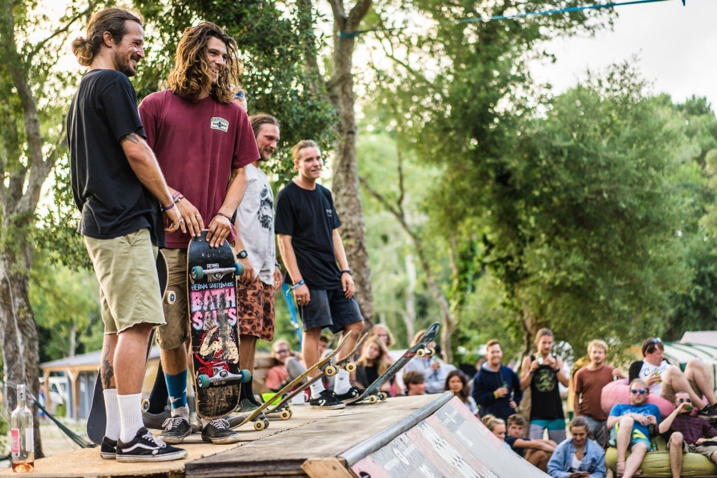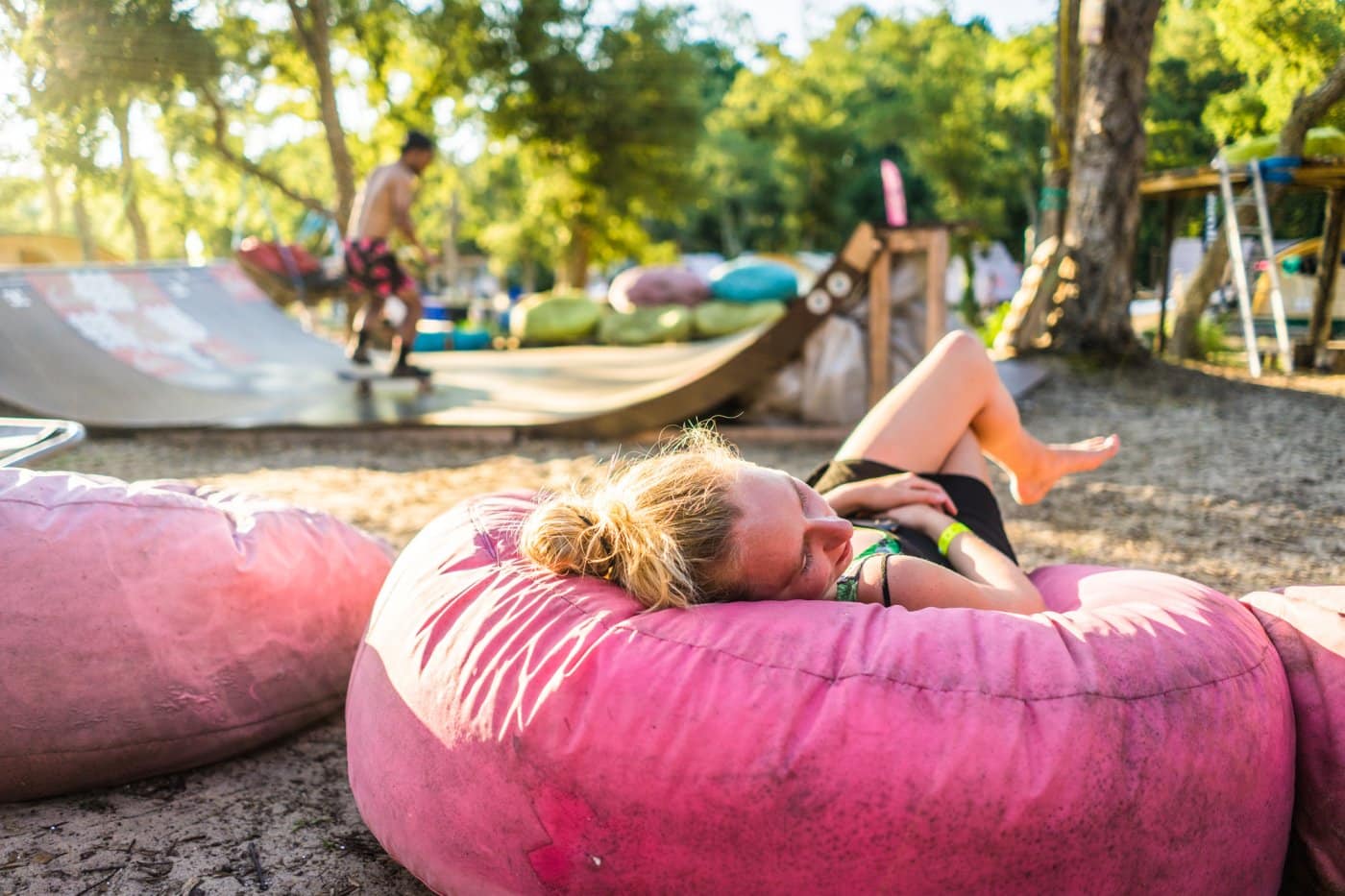 Dagenlang in het water plensen en drogen op het strand, yoga bij ondergaande zon, elke ochtend en avond vers eten op de plank en toch ook af en toe een pintje of twee. Of tien. En tussen dat alles door nog skatecontests, dansen met Kraantje Pappie in L’Open, beerpongen tegen Britten (die winnen áltijd, je bent gewaarschuwd), slacklinen en vooral gewoon samenzijn en genieten, van golvenkluns tot acrobaat der oceaan. Je vindt er sowieso je draai wel, het vooroordeel van de newbie bleek fout.