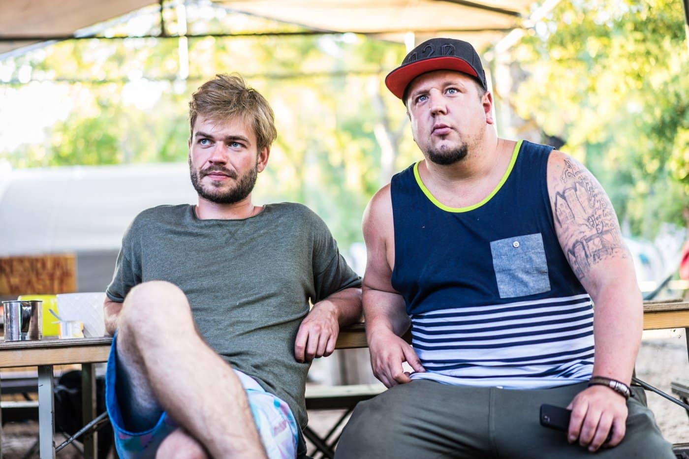 Met onze haren in de wind reden we al roadtrippend naar de Landes, raampjes open en de zoete dennenlucht naar binnen snuivend. Midden in het bos staat het Progress tentendorp te blinken. Een heerlijke mengelmoes van sappig Hollands en rollend Vlaams waait ons tegemoet. Het kamp, helemaal opgebouwd in hout en tenten rondomrond, wordt bemand door een enthousiaste crew. Klein en gezellig, iedereen hangt wel ergens in de buurt van de bar. Hier gaan we ons wel een week kunnen thuis voelen. En Leuven boven, want er is Stella!