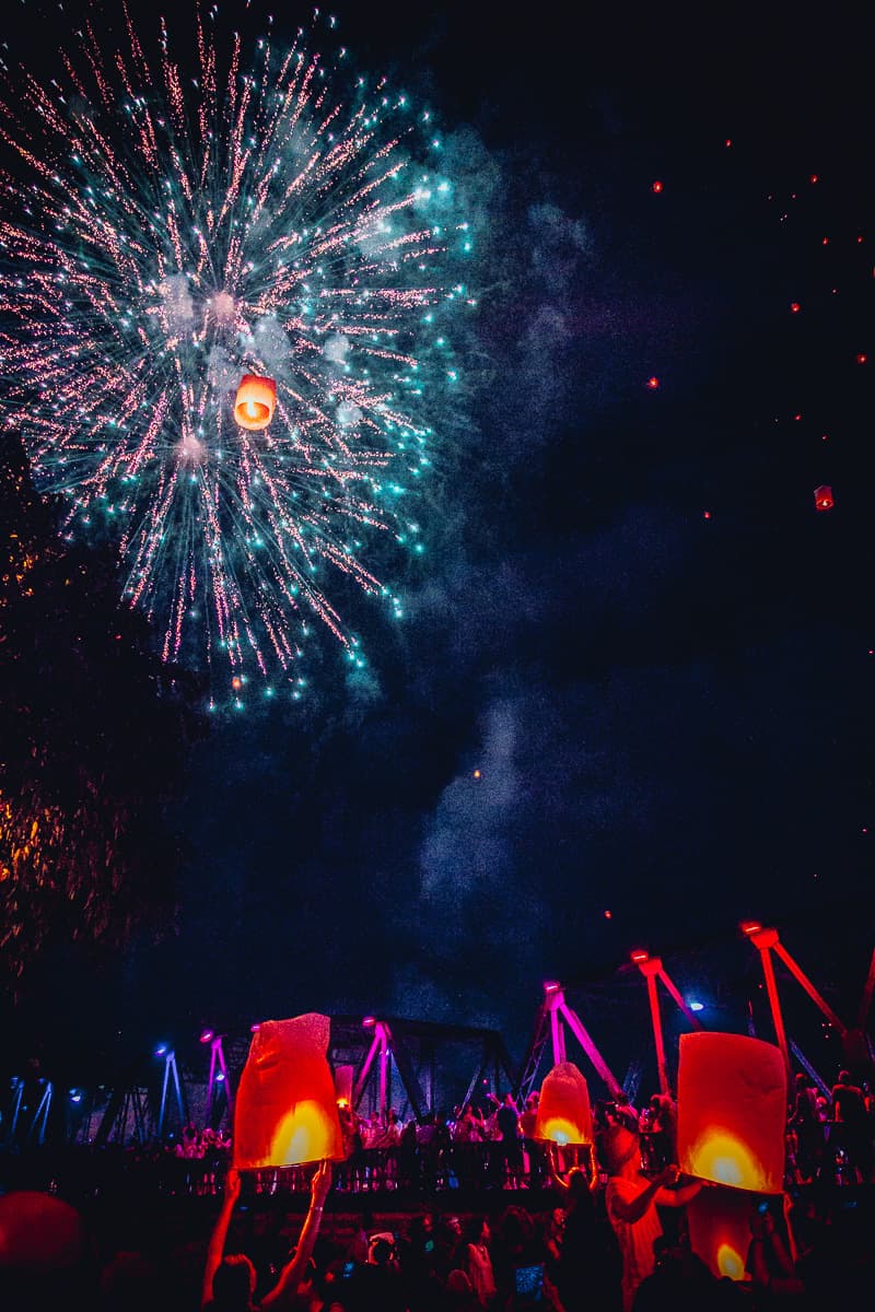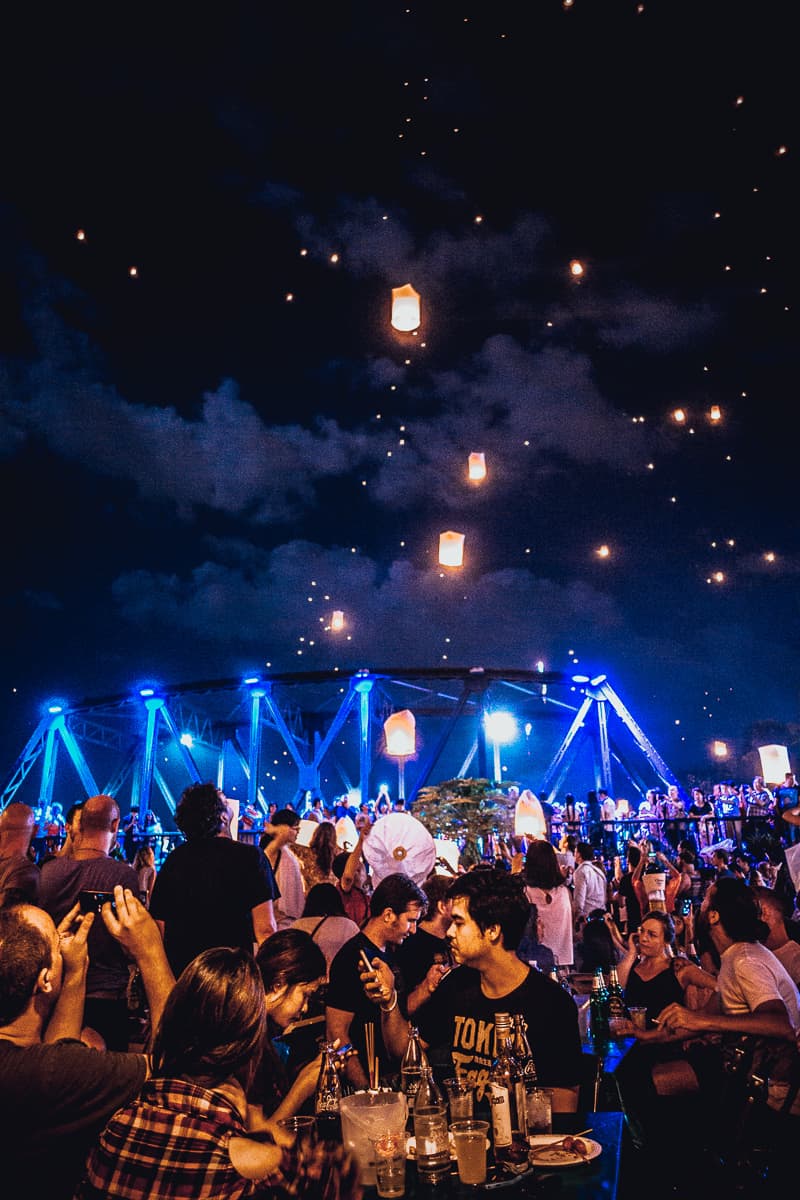 Misschien ook omdat ze het geheel toeristisch beginnen uit te buiten en alle mensen op eenzelfde plaats (aan de universiteit) willen krijgen om het festival te bewonderen. En daar vragen ze dan ook 100dollar inkom voor. Dit event vindt de week na Loi Krathong plaats, een ander festival in Thailand waarbij ze kaarsen op het water laten om de natuur en Buddha te eren. Maar vergeet dat en zorg er voor dat je aan de rivier bent tijdens Yi Peng. Echt fantastisch. Overal waar je kijkt zie je vlammen de lucht in gaan, en dat voor uren aan een stuk. Ik zag zeker 10.000en lantaarns opstijgen. Non stop. Echt magisch.