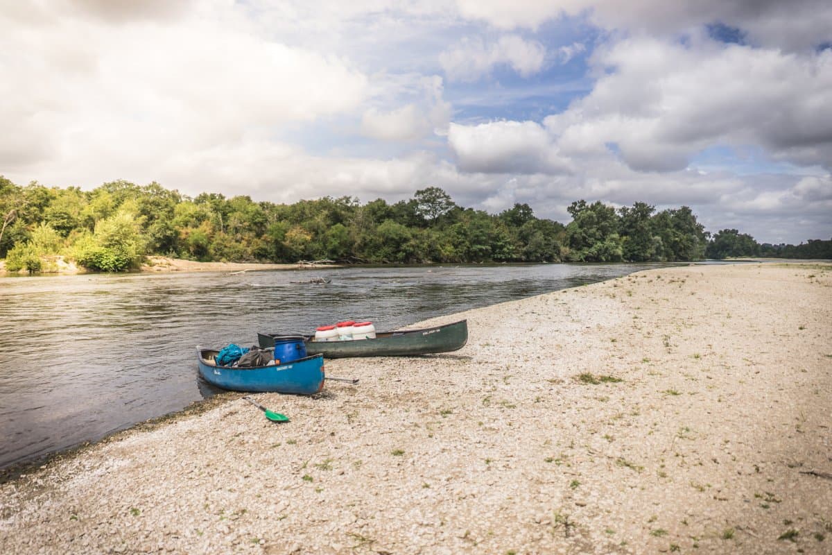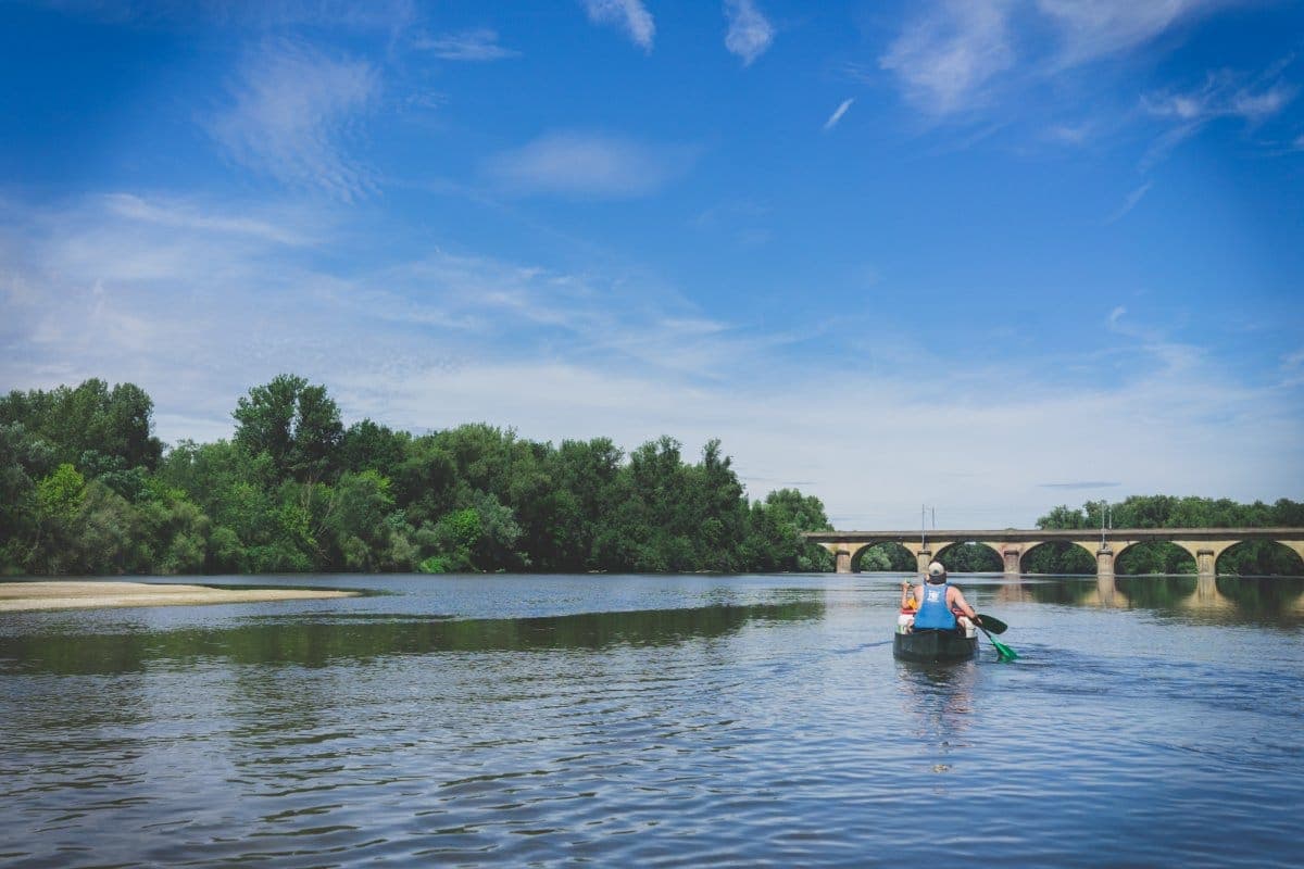 In Moulins ligt de Allier op ons te wachten. Een knoefter van een rivier in het midden van het departement Auvergne-Rhône-Alpes, omsingeld door de Cher, de Creuse en de Loire. We zouden van 75 kilometer peddelen naar Le Geutin, waar de Allier samensmelt met de Loire, de koningin der Franse rivieren. Onderweg zouden we vooral prairie tegenkomen, en geen toeristen. Hartje zomer moesten we de rivier delen met slechts 50 andere rivierploeteraars. Slechts 1 dorpje ligt te blinken aan de oevers van de brede watermassa, het door toeristen overspoelde Apremont-sur-Allier. De moeite voor een stop, maar voor toch vooral om de waterreservoirs te vullen.