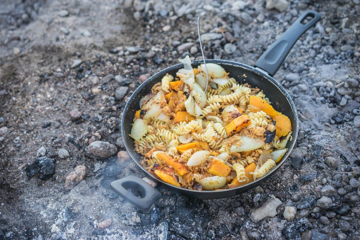 Ditmaal gingen we 3 nachten aan slow cooking doen op het kampvuur. De frisse pasta putanesca met doorrookte sinaasappels was de winnaar van de loutering vierdaagse. Met op de 2de plaats de veggie butternut ajuin combo. Gewoon de groenten met een dikke schil los tussen de kolen gooien, wachten met een wijntje erbij. Zodra je kampvuur begint te ruiken naar sappige ajuin kan je beginnen proeven. Het pastaatje kookt zichzelf wel.