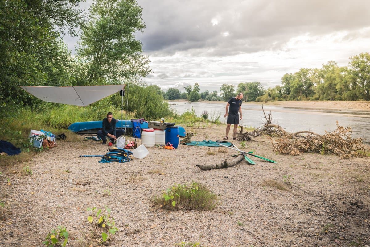 Kamperen kan je zomaar aan de oevers van de rivier, er is daar verder niemand